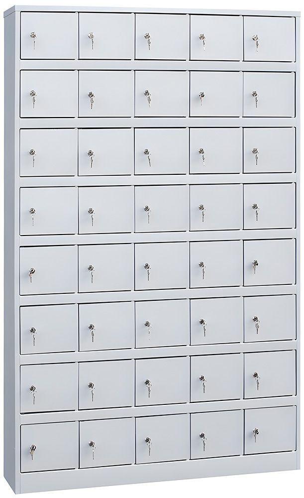 Шкаф металлический на 40 запираемых ячеек/отделений. Для хранения различных предметов которые необходимо упорядочить и ограничить к ним доступ. Ячейки запираются на ключевой замок.