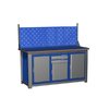 870х1500х700 мм. со столешницей (фанера 24 мм. + 6 мм. сталь). Сборно-разборный каркас. Включает в себя: два модуля с дверцей и 2-я выдвижными ящиками, полку-стенку большую.