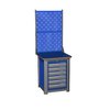 870х2000х700 мм. со столешницей (фанера 24 мм. + 6 мм. сталь). Сборно-разборный каркас. Включает в себя: два модуля с дверцей, две полки-стенки большие.