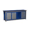 870х2000х700 мм. со столешницей (фанера 24 мм. + 6 мм. сталь). Сборно-разборный каркас. Включает в себя: четыре модуля с дверцей и одним выдвижным ящиком.