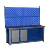 870х2000х700 мм. со столешницей (фанера 24 мм. + 6 мм. сталь). Сборно-разборный каркас. Включает в себя: модуль с дверцей и одним выдвижным ящиком, 2-е полки-стенки большие, модуль с 6-ю выдвижными ящиками.