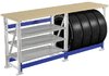 MASTER M100.MF1.MF1.MF1.201.002 с полками тремя опорами и деревянной столешницей - предназначен для удобной организации рабочего места в гаражах, мастерских, в учебных заведениях, и даже на балконах, за счет компактных размеров. Возможность хранения 4-х колес  R15 195/65  R16 205/55.