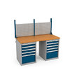 Металлические элементы верстака окрашены эпоксидной порошковой краской, устойчивой к механическим воздействиям и агрессивным жидкостям.