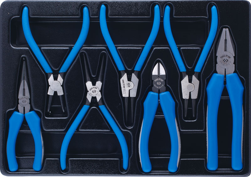 KING TONY 9-40207GP - набор съемников стопорных колец, плоскогубцев и бокорезов, 7 предметов в ложементе подходит для проведения ремонтных работ автомобиля и столярно-слесарных работ. В комплекте съемники внутренних и внешних стопорных колец, пассатижи и плоскогубцы.