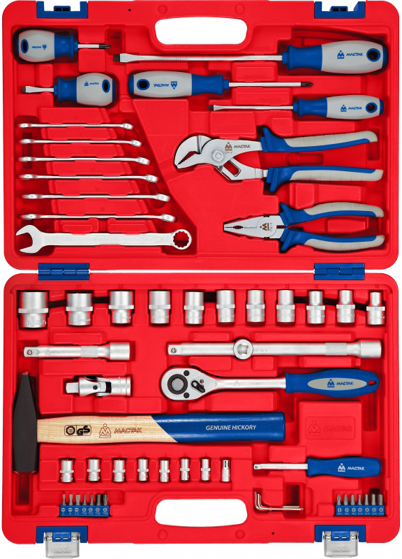 МАСТАК 01-058C - универсальный набор инструментов, состоящий из 58 предметов в удобном пластиковом чемодане. Это многофункциональный комплект, который подойдет для монтажа и демонтажа резьбового крепежа. Применяется в монтажных работах при ремонте автомобиля или домашней мастерской, как профессионалами, так и частными мастерами.