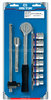 Набор инструментов King Tony 2521MR включает в себя 12 шестигранных торцевых головок с рабочими размерами от 4 до 13 мм и присоединительным квадратом 1/4 дюйма, а также аксессуары (всё вместе – 19 предметов) в металлическом кейсе с габаритами 198x105x 32 мм. Ручной слесарный инструмент: • головки торцевые шестигранные короткие 1/4"; размеры: 4; 4,5; 5; 5,5; 6; 7; 8; 9; 10; 11; 12; 13 мм; • вороток реверсивный (трещотка) с флажком 24 зубца 1/2" 130 мм; • вороток скользящий Т-образный 1/4" 115 мм; • вороток срывной с шарниром на 180° 1/4" 125 мм; • удлинители прямые 1/4"; размеры: 50 и 100 мм; • кардан шарнирный 1/4"; • переходник адаптер для вставок 1/4". Набор инструментов торцевых головок 1/4 дюйма 4-13 мм, 19 предметов King Tony 2521MR предназначен для использования в ремонтных работах как на станциях технического обслуживания автомобилей и т. п. предприятиях, так и в частных гаражах. Весь инструмент марки King Tony изготовлен из высококачественной легированной хром-ванадиевой стали и способен выдерживать высокие нагрузки.