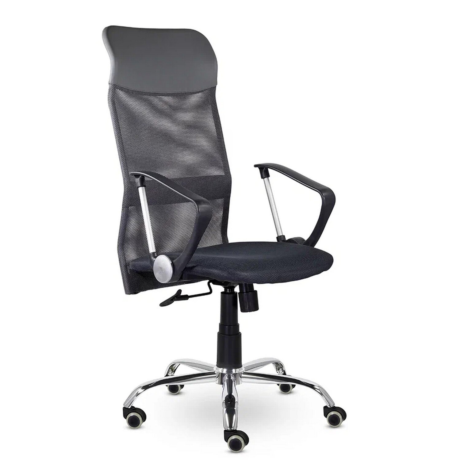 Широкая эргономичная спинка обтянута прочной сеткой, а подголовник – искусственной кожей.Материалы – чехол-сетка на спинке/ сиденье - ткань.