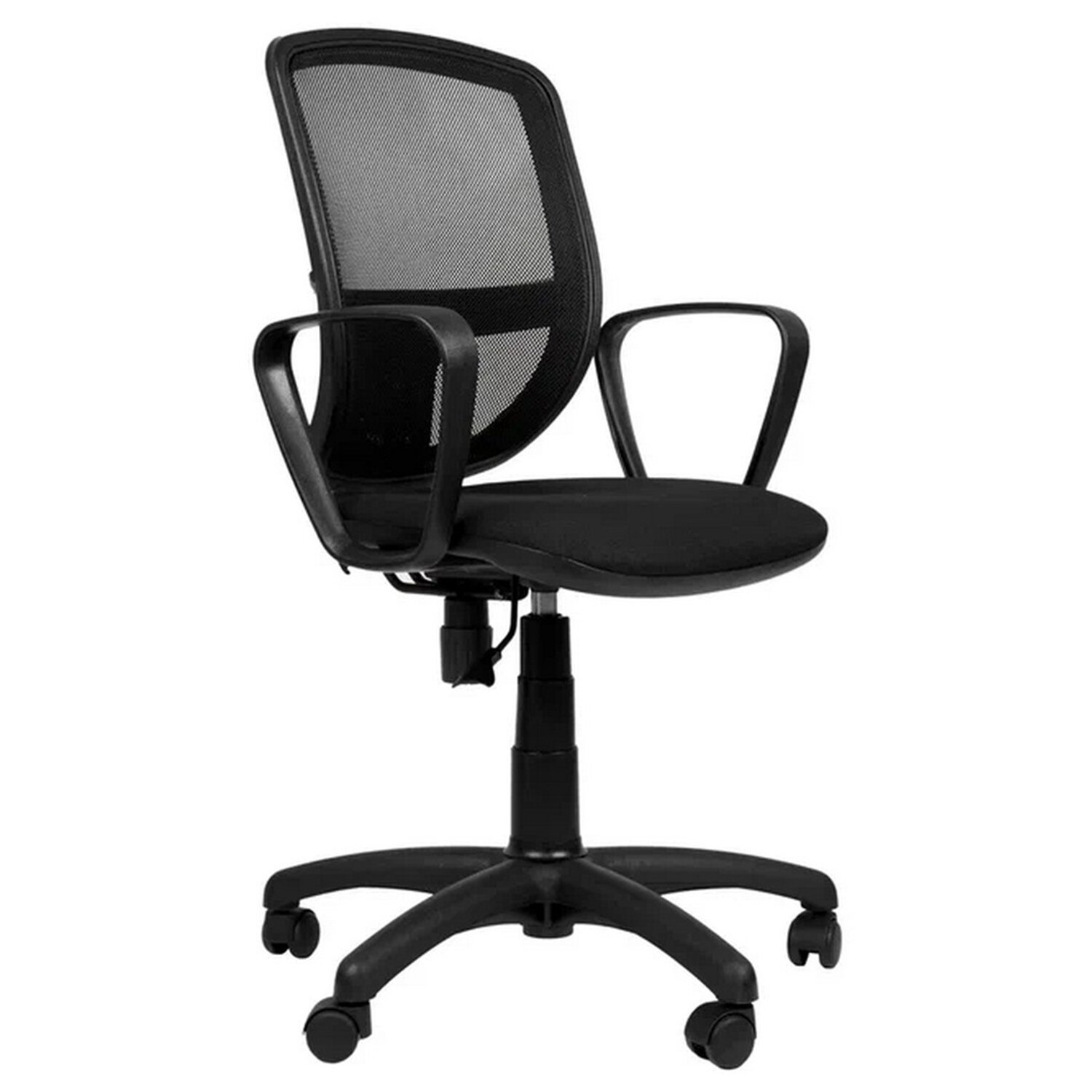 Современное и доступное офисное кресло. Легкая сетчатая спинка обеспечивает дополнительный комфорт. Пружинно-винтовой механизм качания обеспечивает постоянное свободное качание с регулировкой силы отклонения.